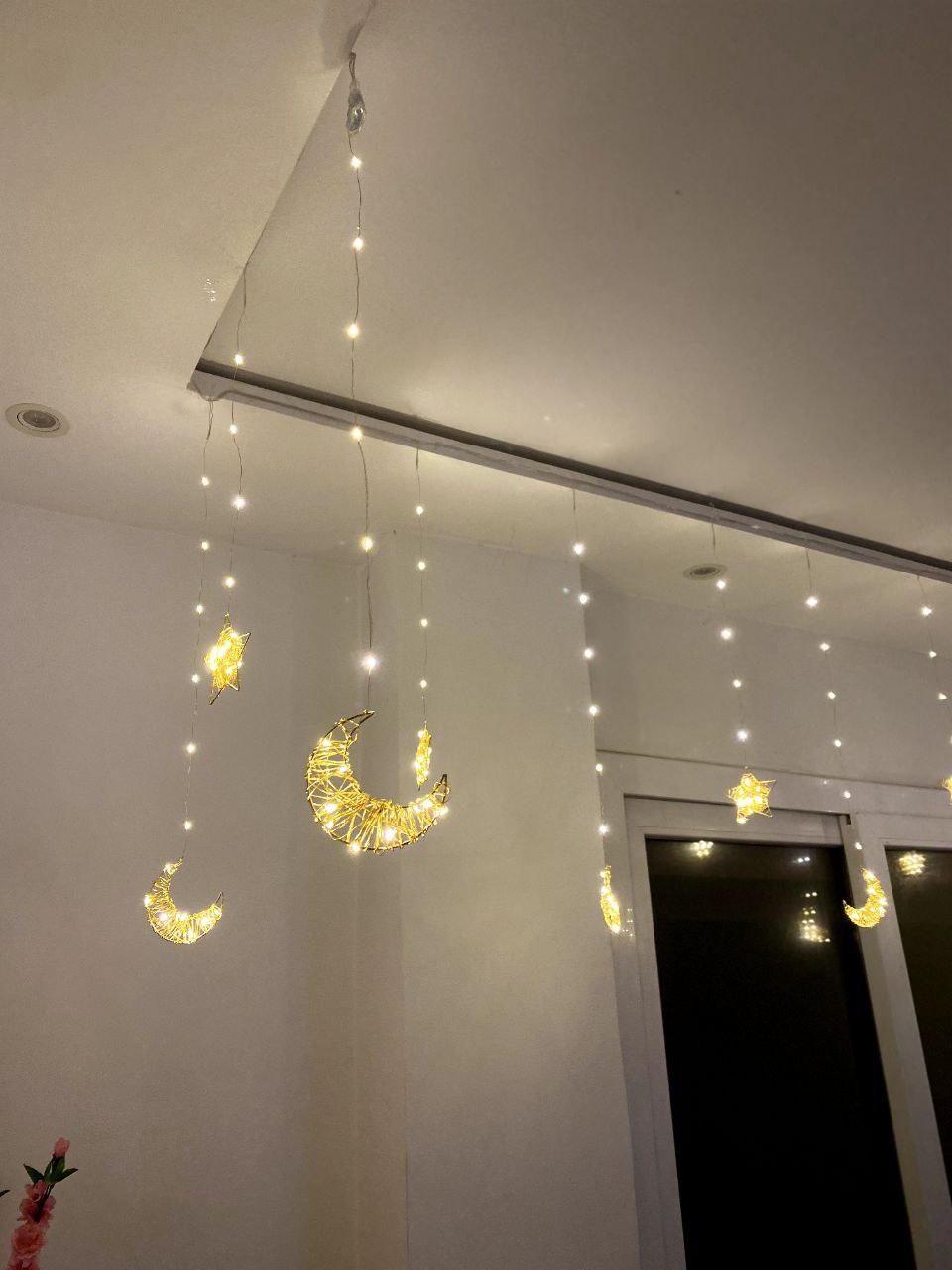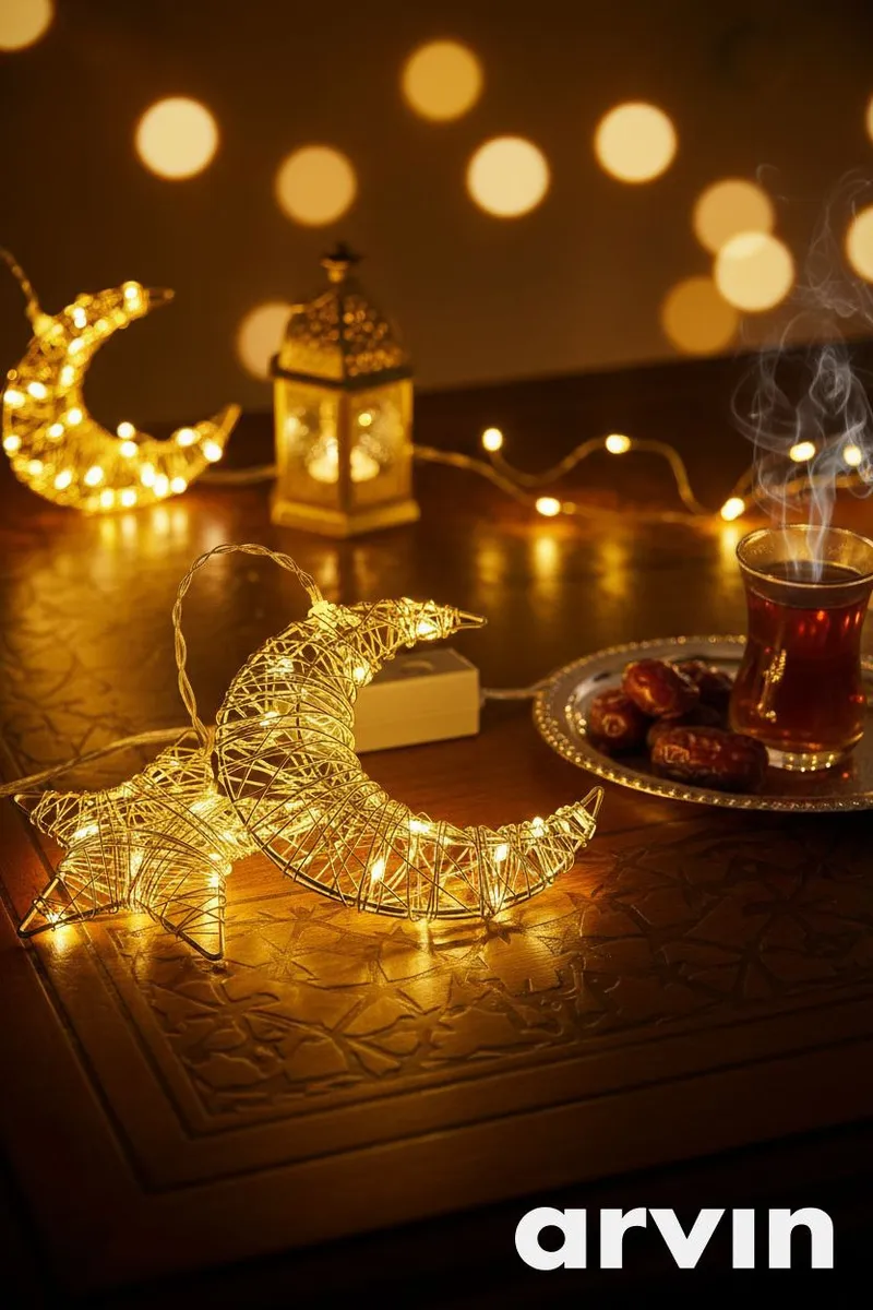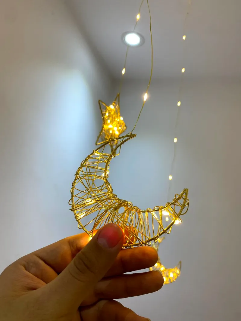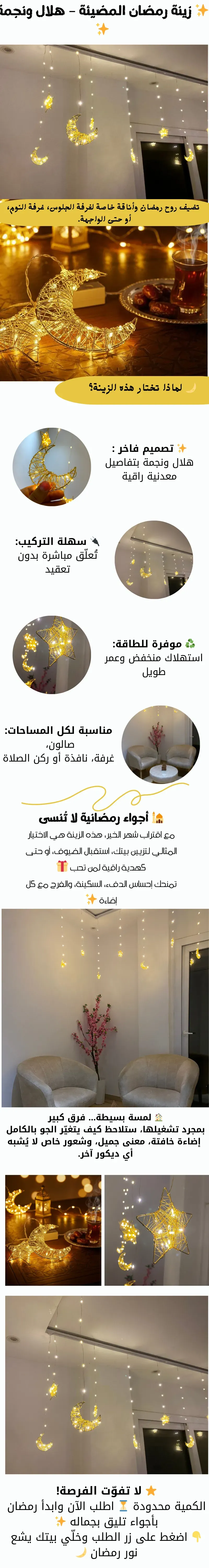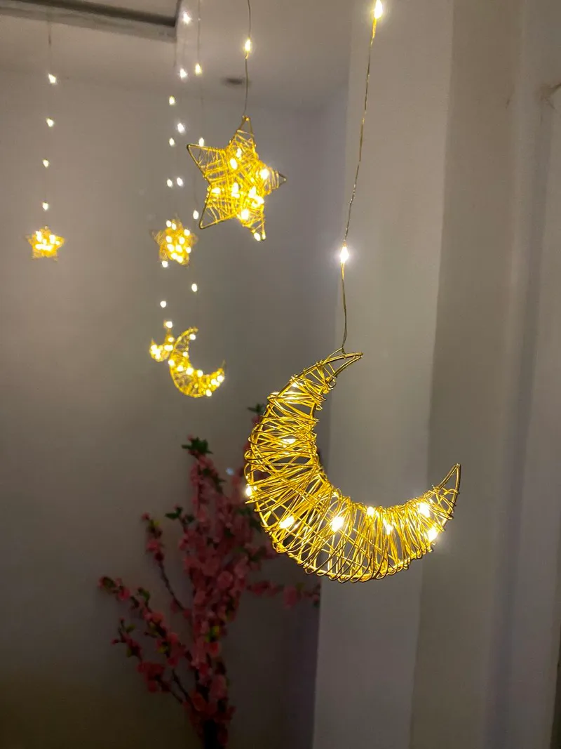 حوّل بيتك إلى أجواء رمضانية دافئة ولمسة فخامة تبهر كل من يراها 🌙⭐ زينة رمضانية مضيئة بتصميم الهلال والنجمة، إضاءة ذهبية ناعمة تضيف روح رمضان طوله 3متر