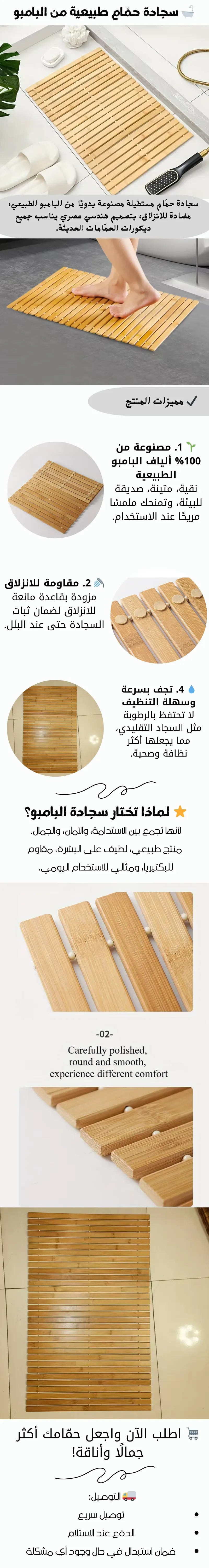 حوِّل حمّامك إلى مساحة فاخرة تجمع بين الجمال الطبيعي والمتانة العالية مع سجادة الحمّام المصنوعة يدويًا من ألياف البامبو الطبيعية 100%. تصميم هندسي رائع يضيف لمسة فنية لكل زاوية في الحمّام.